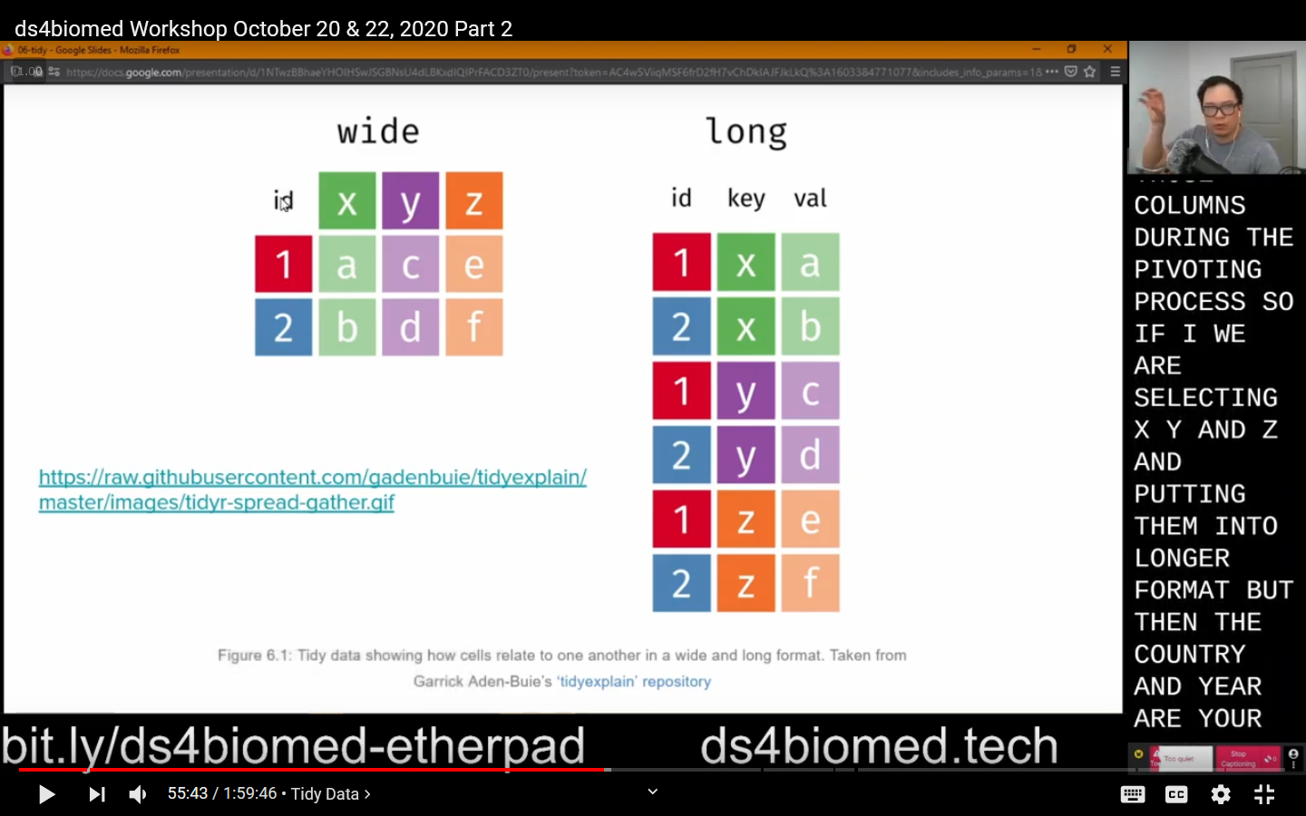For my dissertation, I am writing an online resource that aims to teach data science skills focused towards people who work in the medical and biomedical sciences (ds4biomed). I just finished giving my first workshop using these materials which you can find here (part 1) and here (part 2). I wanted a way to be able to share my screen but also show a live caption at the same time.